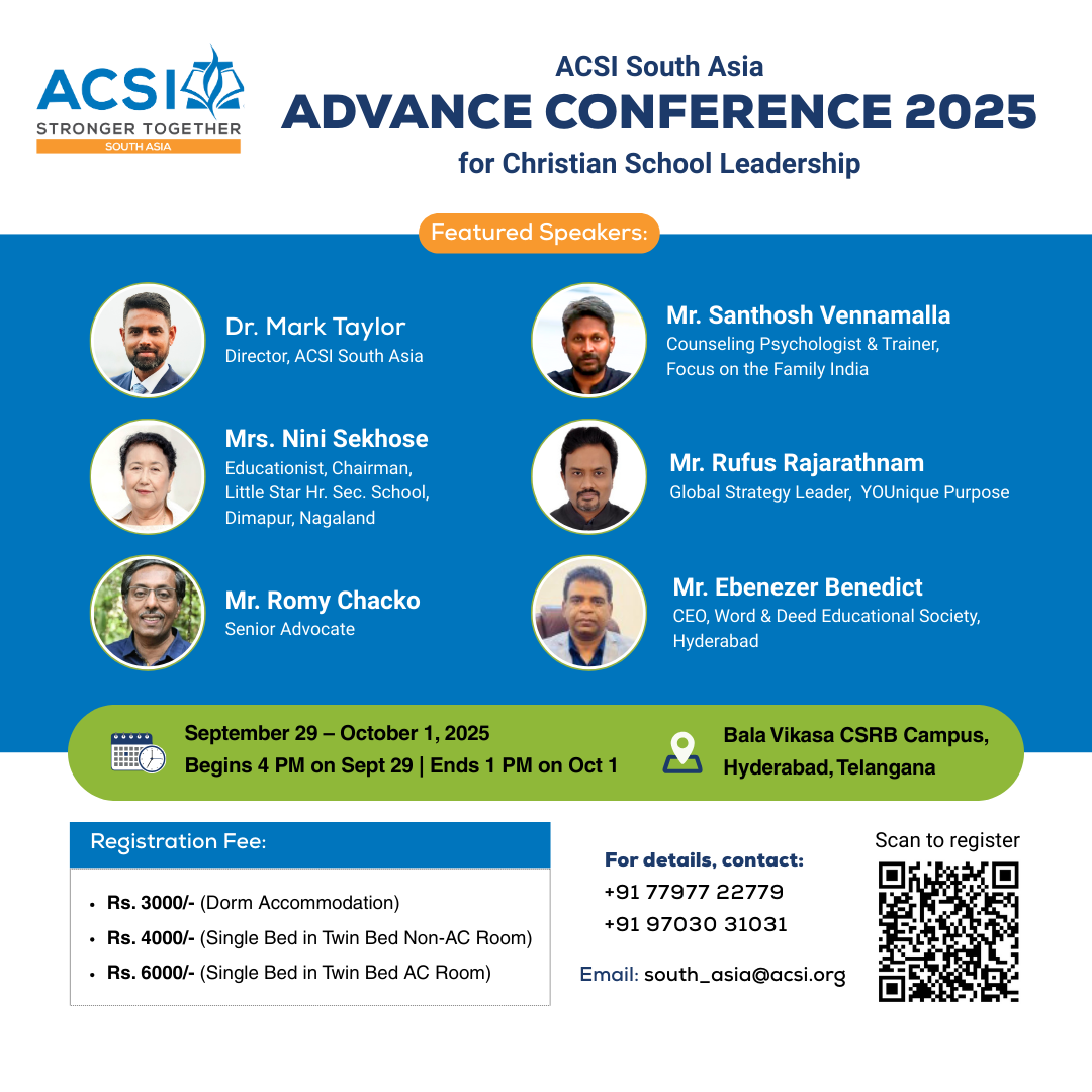 Join Christian school leaders from across South Asia to reflect, grow, and be equipped to lead with excellence.